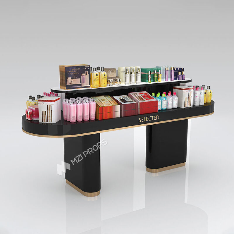 Black & Gold Wooden Beauty Display Table Multi-functional Makeup Store Stand For Cosmetic Shop Interior Design